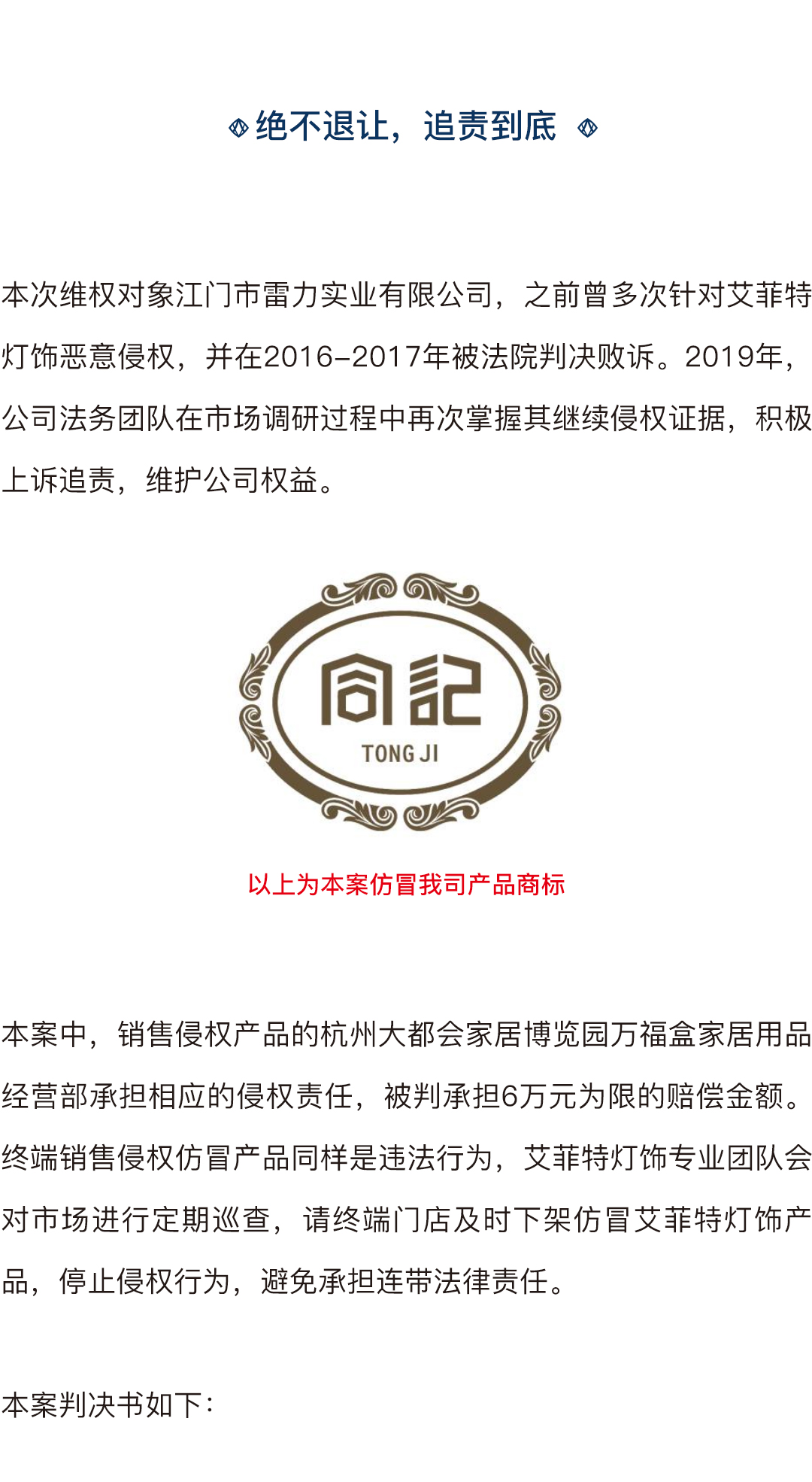編者推薦:判決江門市雷力實業有限公司停止製造、銷售相關侵權產品,杭州大都會家居博覽園萬福家居用品經營部停止銷售相關侵權產品,兩者於判決生效之日起十日內賠償小黄片免费软件公司經濟損